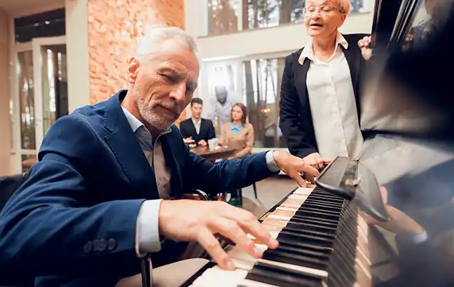 Imagina el calor del escenario y la conexión con la audiencia mientras tocas una variedad de géneros musicales, desde pop y rock hasta jazz y blues. Esta habilidad podría llevarte a convertirte en un pianista profesional en una banda, compartiendo tu pasión con el mundo. Además, al cantar mientras tocas, creas una experiencia completa y cautivadora.