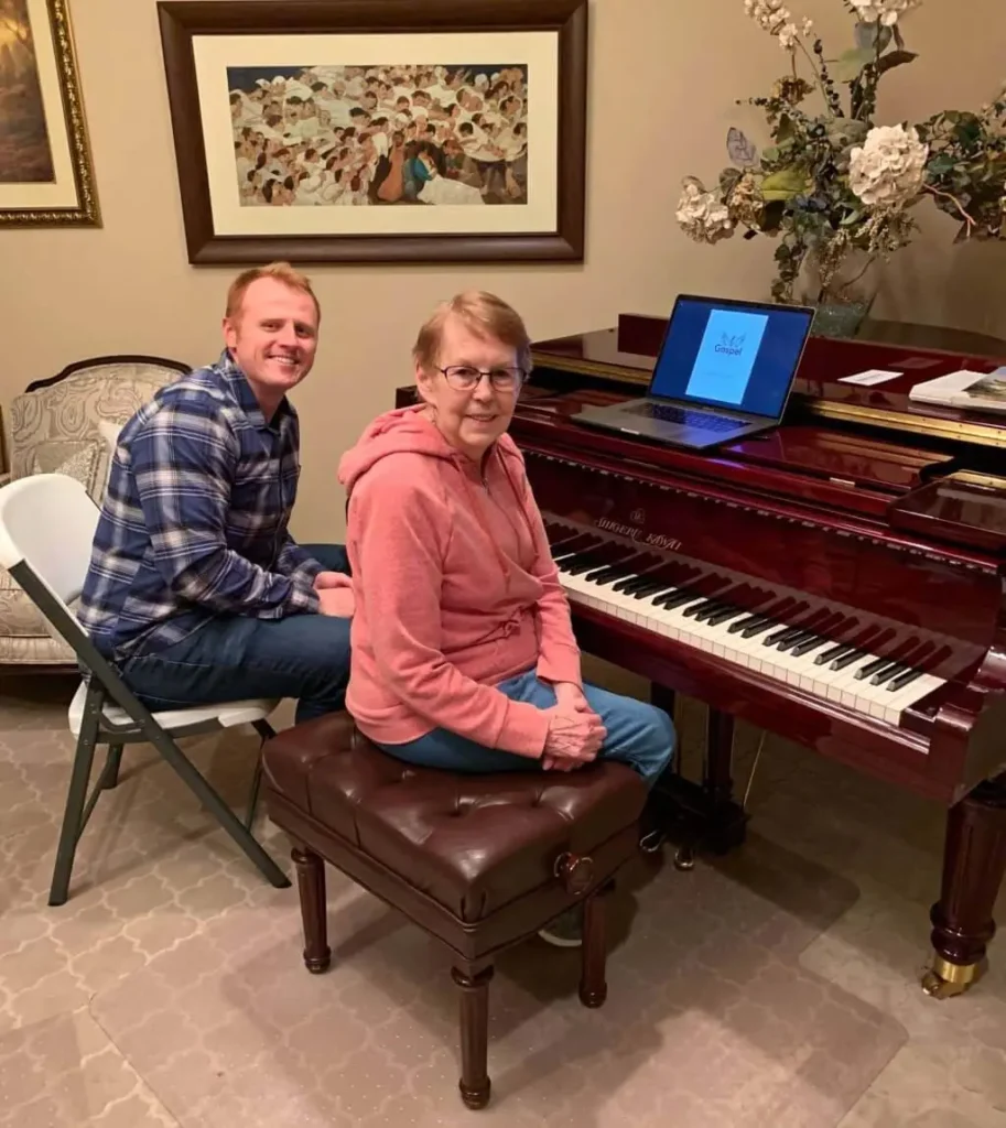 Mi marido llegó del trabajo y me vio jugando. Él dijo “¿estás tocando el piano?” Este día está lleno de sorpresas. Verás, en 40 años de matrimonio nunca he tocado el piano.